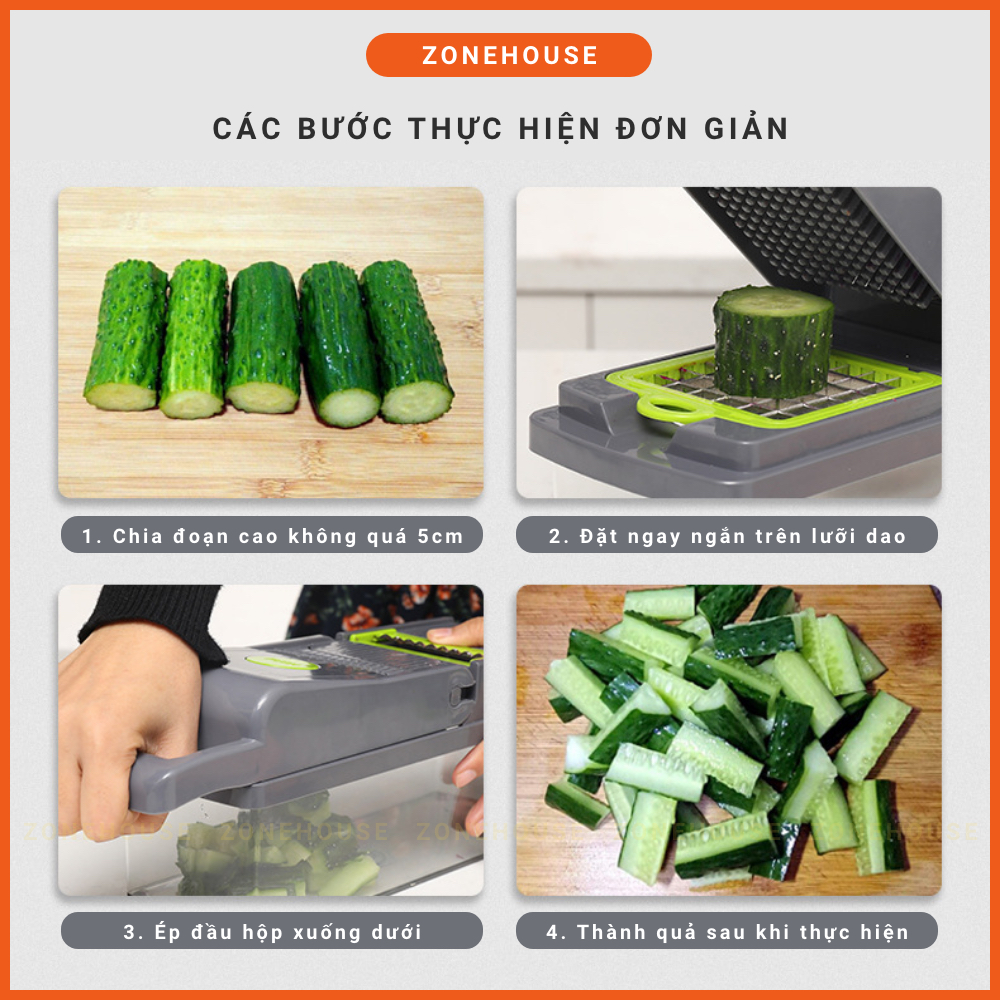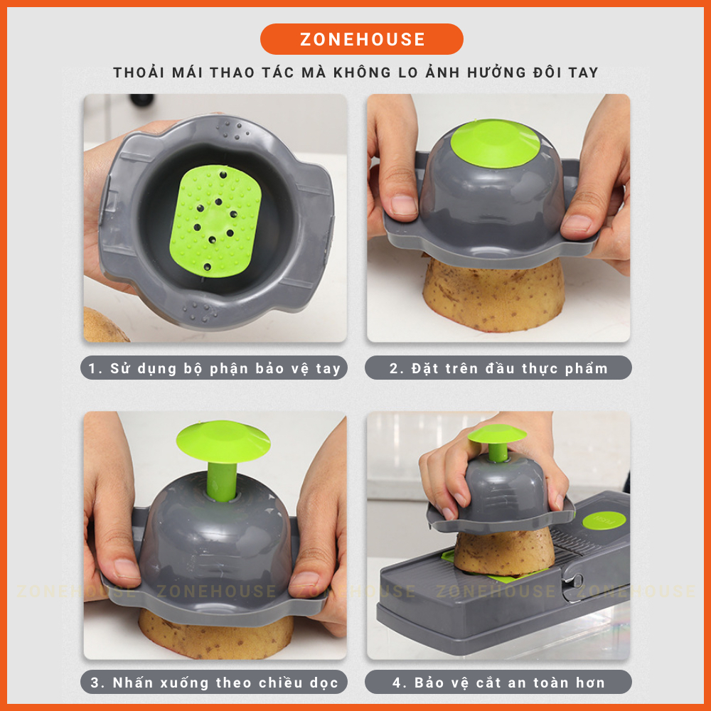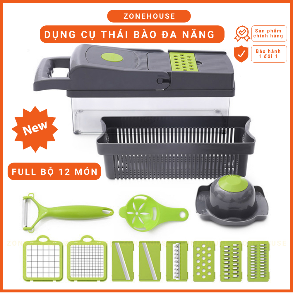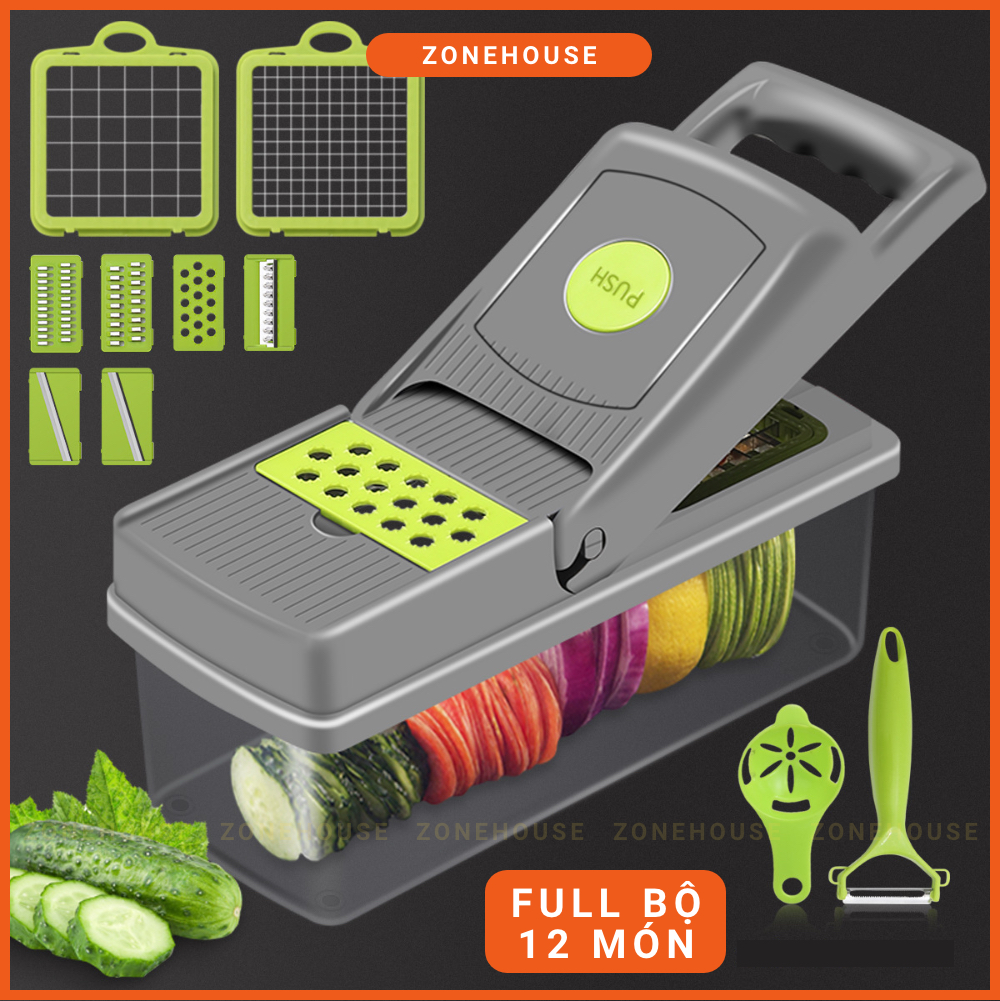 Hộp Cắt Rau Củ Trái Cây ZONEHOUSE, Kèm Lưỡi Dao Nạo Đa Năng, Bộ Cắt Thái Bào Sợi Củ Quả Hạt giá sỉ cực rẻ