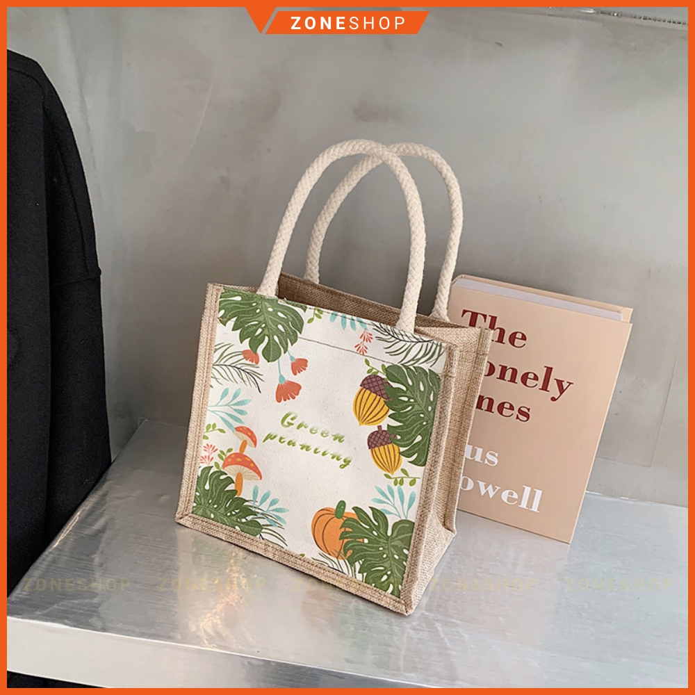 Tên sản phẩm: Túi cói vải mini họa tiết siêu xinh, túi xách tote canvas mẫu mới
