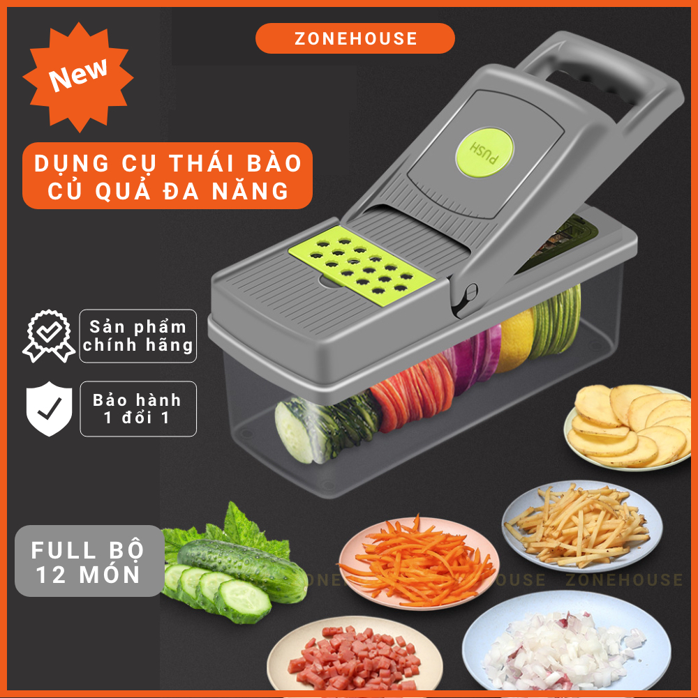 Hộp Cắt Rau Củ Trái Cây ZONEHOUSE, Kèm Lưỡi Dao Nạo Đa Năng, Bộ Cắt Thái Bào Sợi Củ Quả Hạt giá sỉ cực rẻ